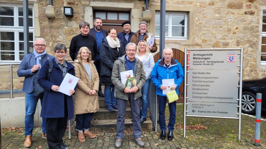 Bildunterschrift: Die bisherigen und neuen Mitglieder des Ortsgerichts Malsfeld gemeinsam mit Bürgermeister Hanke und Direktor des Amtsgerichts Melsungen Dr. Springmann